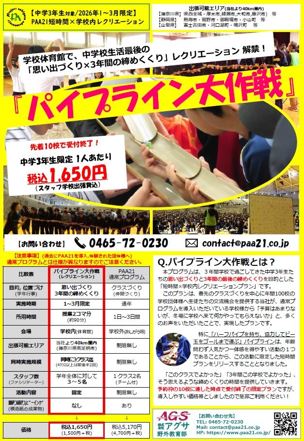 (中学校)中3×冬季限定×校内出張レク『パイプライン大作戦』
